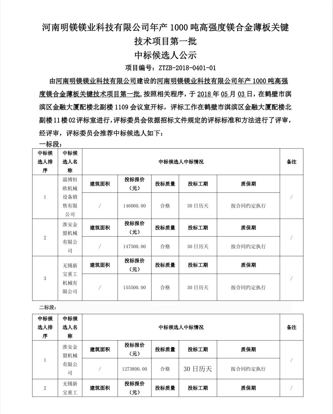技術(shù)項目第一批 中標候選人公示