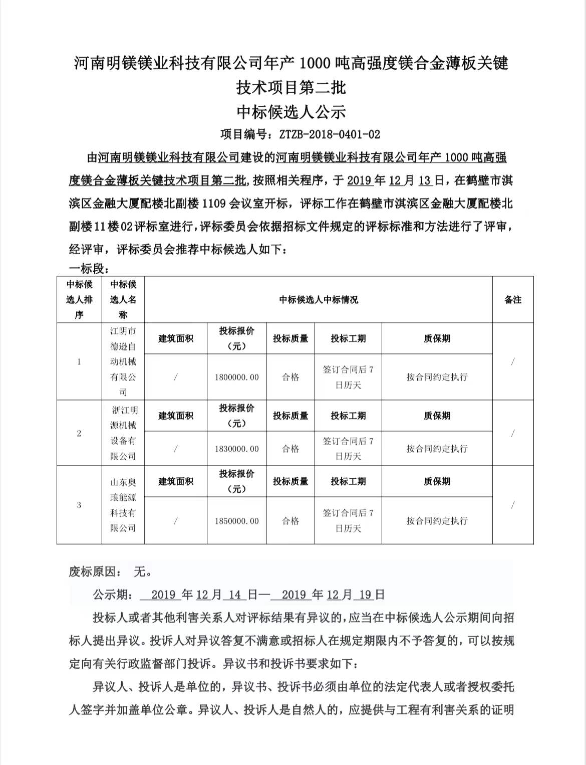 公告日期: 14/12/2019