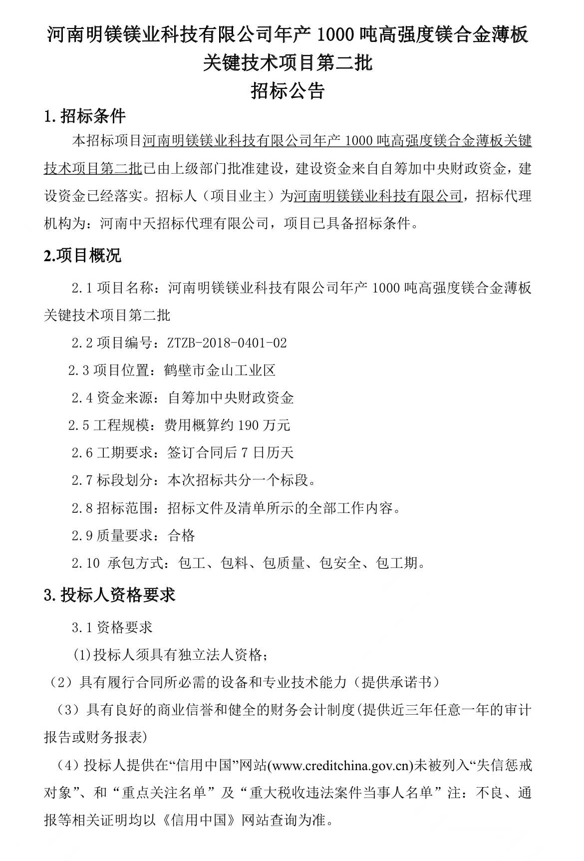 技術(shù)項(xiàng)目 年產(chǎn) 1000 噸高強(qiáng)度鎂合金薄板