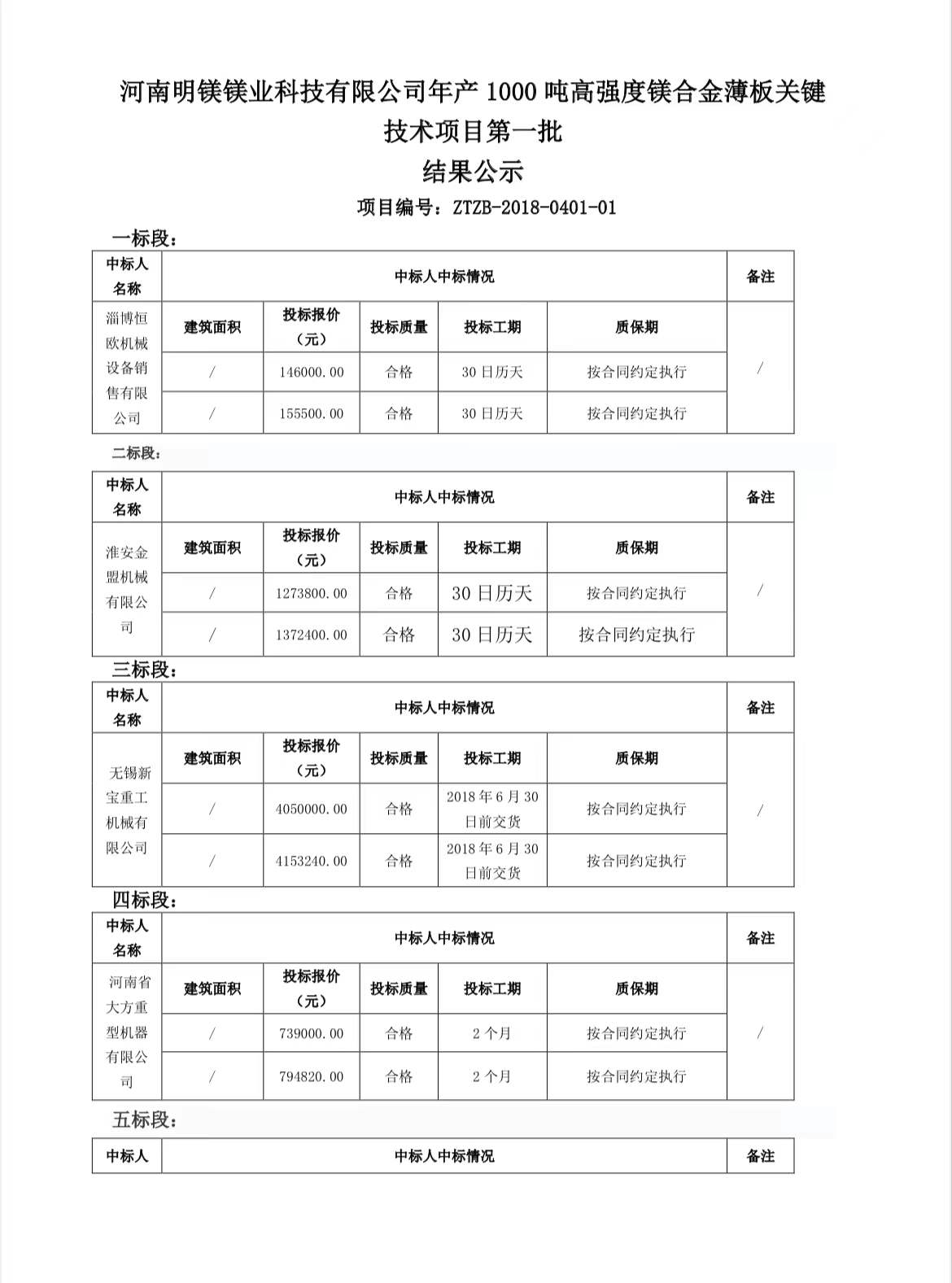 技術(shù)項目第一批結(jié)果公示 - 1000噸高強度鎂合金薄板